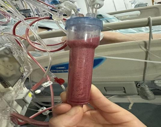 经过床旁血液净化、抑制胰酶分泌及活性、抗凝降脂、血糖调控等联合治疗,覃超逐步脱离生命危险。令人警醒的是,由于其血液中血脂含量过高,血液净化过程中抽出的血液呈乳白色,如同“牛奶血”。